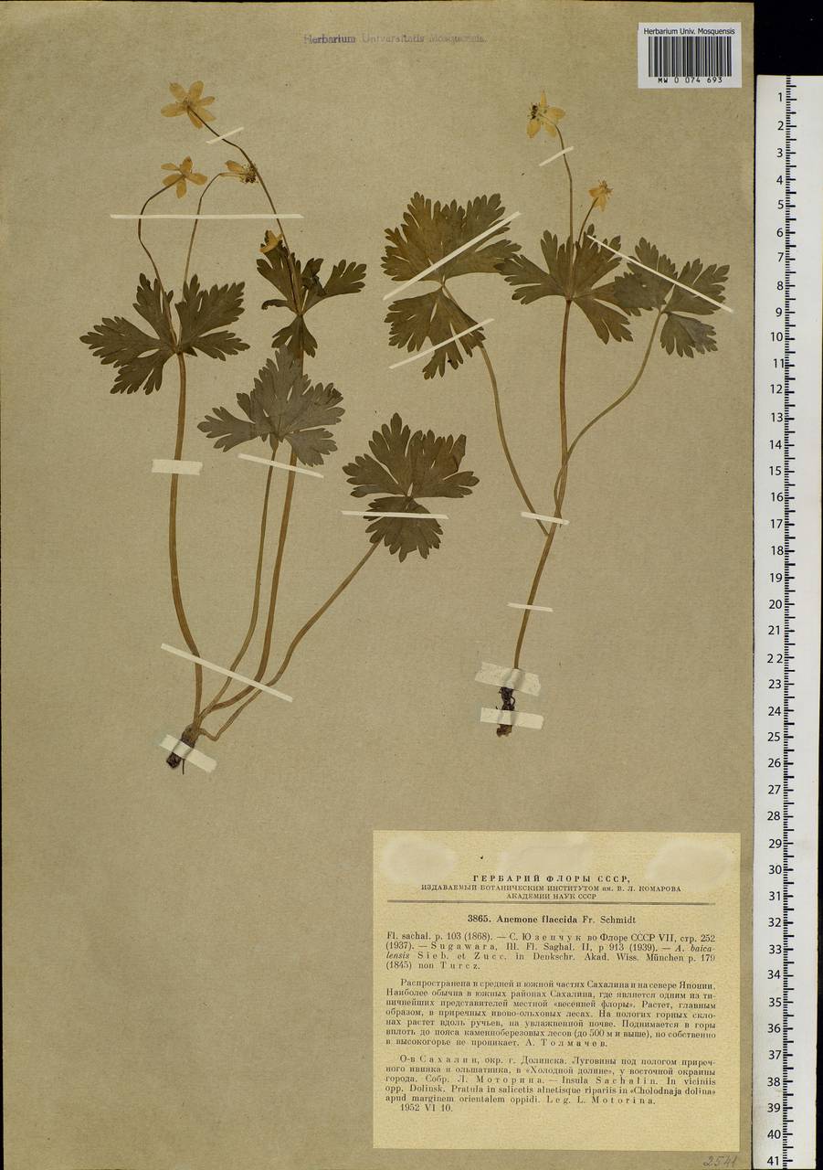 Fl. sachal. p. 103 (1868). - С. Юзепчук во Флоре СССР VII, стр. 252 (1937). - Sugawara, Ill. Fl. Saghal. II, p. 913 (1939). - A. baicalensis Sieb. et Zucc. in Denkschr. Akad. Wiss. München p. 179 (1845) non Turcz. Распространена в средней и южной части Сахалина и на севере Японии. Наиболее обычна в южных районах Сахалина, где является одним из типичнейших представителей местной "весенней флоры". Растет, главным образом, в приречных ивово-ольховых лесах. На пологих горных склонах растет вдоль ручьев, на увлажненной почве. Поднимается в горы вплоть до пояса каменноберезовых лесов (до 500 м и выше), но собственно в высокогорье не проникает. А. Толмачев.