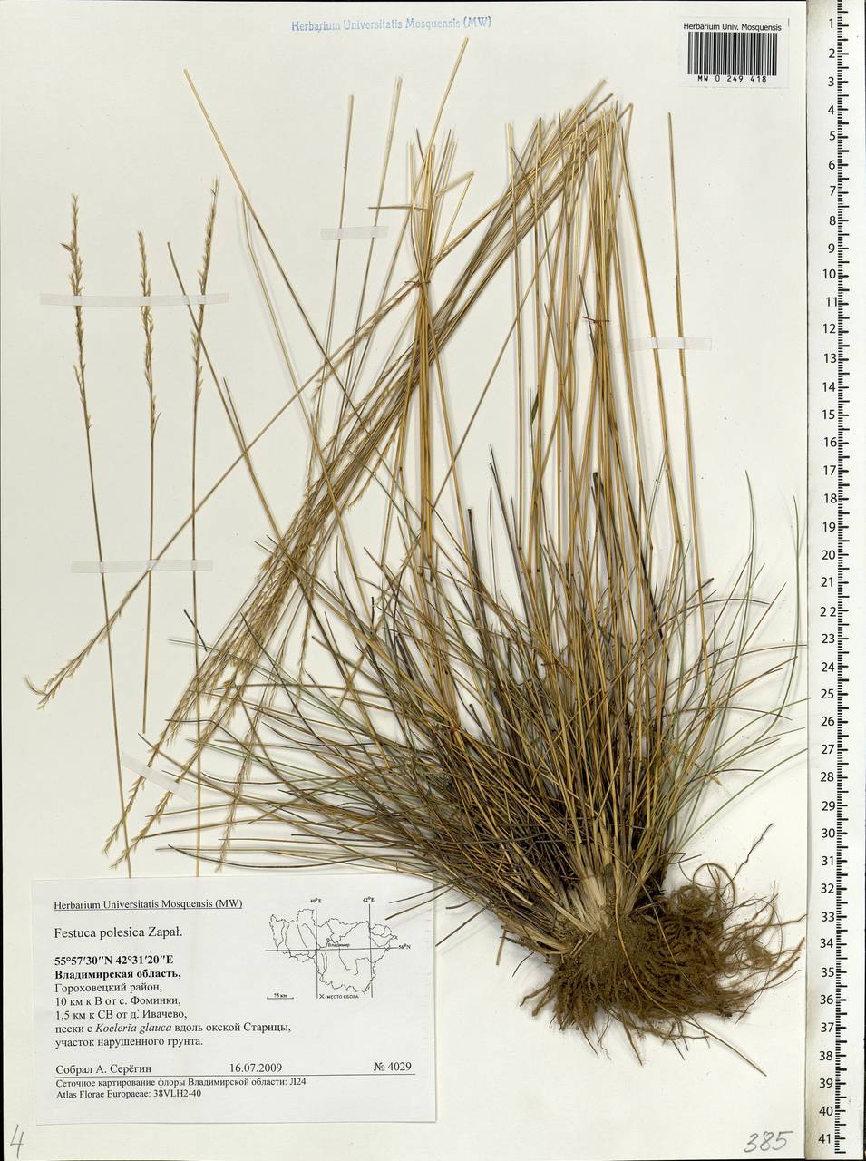 Владимирская область, Гороховецкий район, 10 км к В от с. Фоминки, 1,5 км к СВ от д. Ивачево, пески с Koeleria glauca вдоль окской Старицы, участок нарушенного грунта. Сеточное картирование флоры Владимирской области: Л24. Atlas Florae Europaeae: 38VLH2-40
