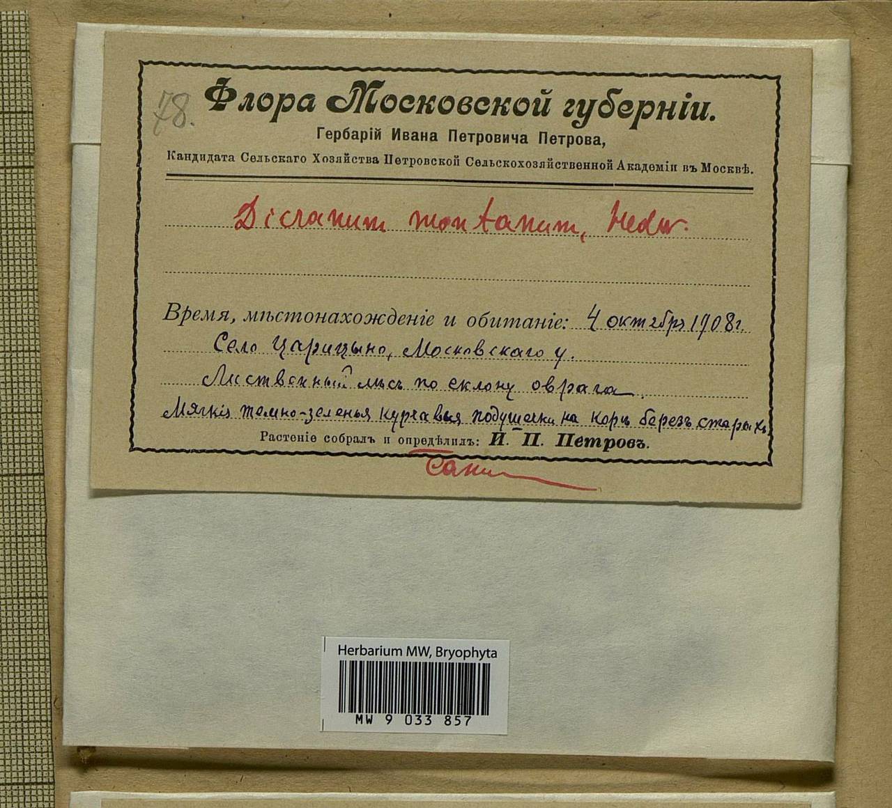 Флора Московской губернии. Гербарий Ивана Петровича Петрова, Кандидата Сельского Хозяйства Петровской Сельскохозяйственной Академии в Москве.