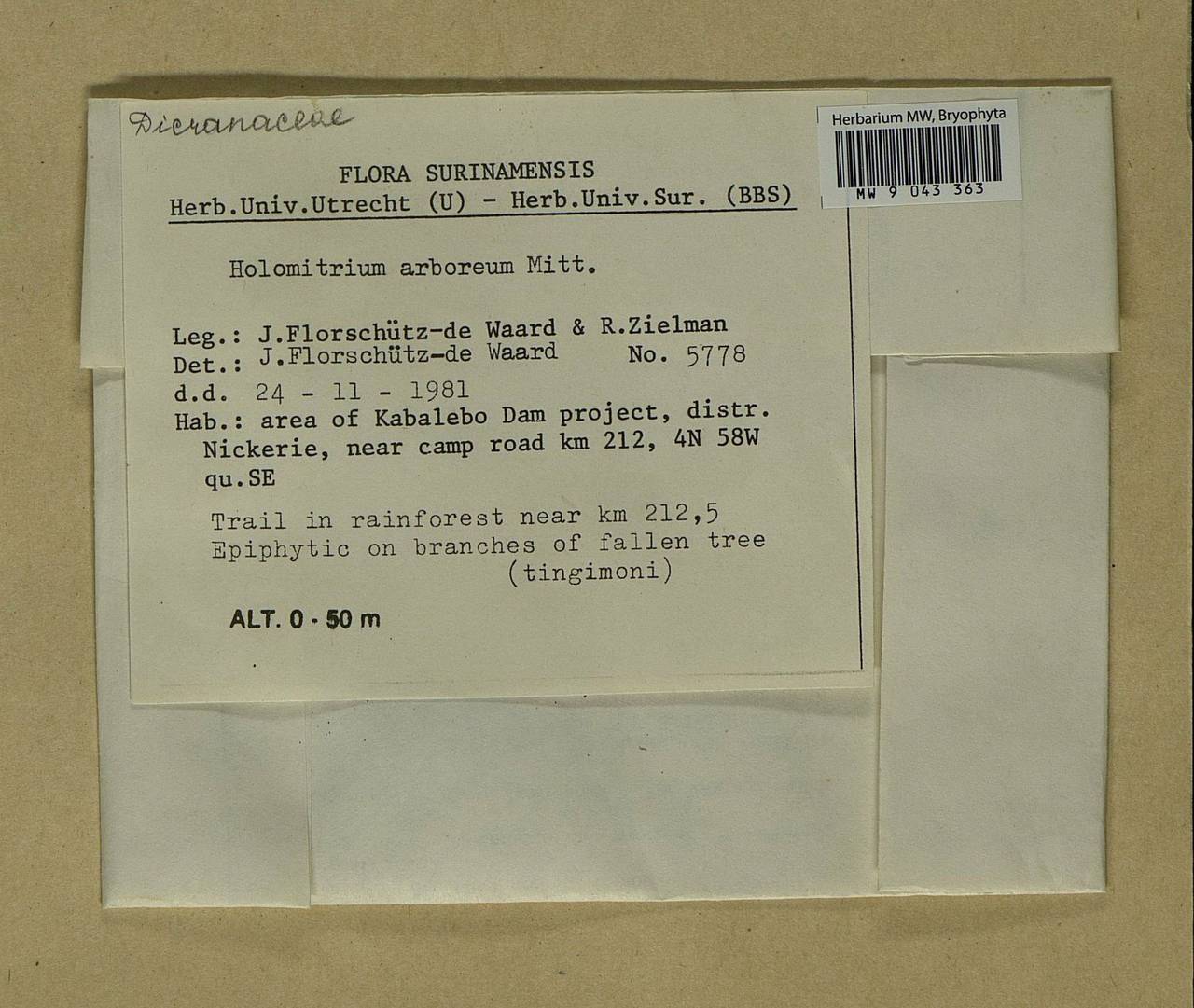 - Гербарий мохообразных, Мхи - Америка (BAm) (Суринам)